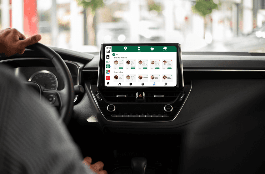 Integrating the Starbucks app in the car infotainment screen.